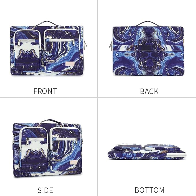 canvaslife 360° Protective Laptop Sleeve Case Bag with 4 Pockets for MacBook Pro 16 inch and 15 inch-15.6 inch Laptop (Blue marble)