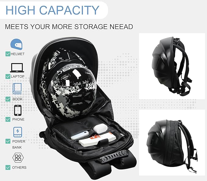 - 【High capacity】The size of the LED backpack is about 32.5*42*19cm, with enough storage space. In normal mode, slightly larger items such as laptops and tablets can be placed. The extended part of the backpack can be opened to place larger full-face helmets. In addition, there are many small interlayers inside the backpack, which can hold your keys, tissues, mobile phones and other smaller items.