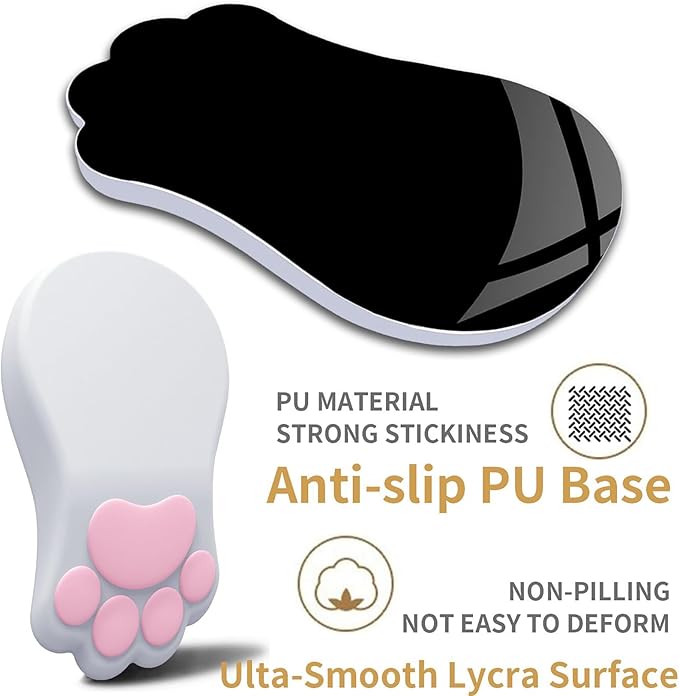 - 【Non-Slip PU Base】Grey cat paw ergonomic mouse pad with wrist rest and keyboard wrist rest feature anti-slip PU base can grasp firmly in place on any surface, preventing slipping or sliding during use.The anti-slip bottom ensures the mouse pad with wrist rest remains stable,whether you're working on a desk, bed, or couch, the pad stays firmly in place