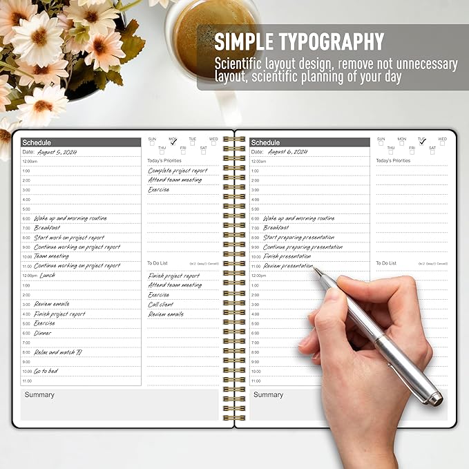 - Flexible Scheduling:This 24-hour schedule undated daily planner allows you to start at any time, eliminating wasted pages for missed days or days off. Flexibly plan your schedule and maximize productivity without restrictions