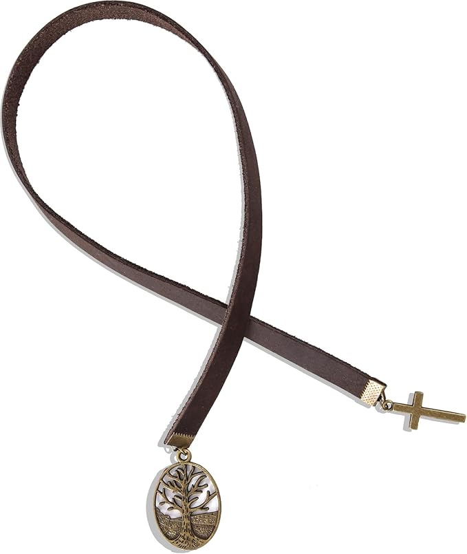 - VINTAGE ANTIQUE - These bookmarks are made from genuine leather and feature a bronze saint pendant, providing a textured, ancient, and mysterious feel while ensuring durability. The other end has a small metal cross pendant. The dark brown leather combined with the vintage pendants creates a delicate and beautiful design.