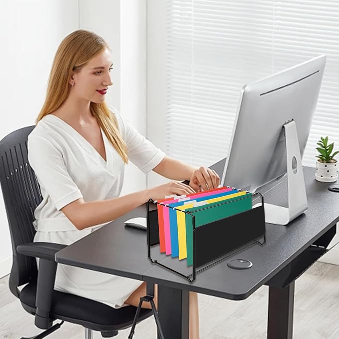 - High-Quality Construction:Made with sturdy,tear-resistant material,these hanging file folders are built for long-term use. The strong metal rods provide smooth sliding inside file cabinets, ensuring that your documents stay organized and accessible.