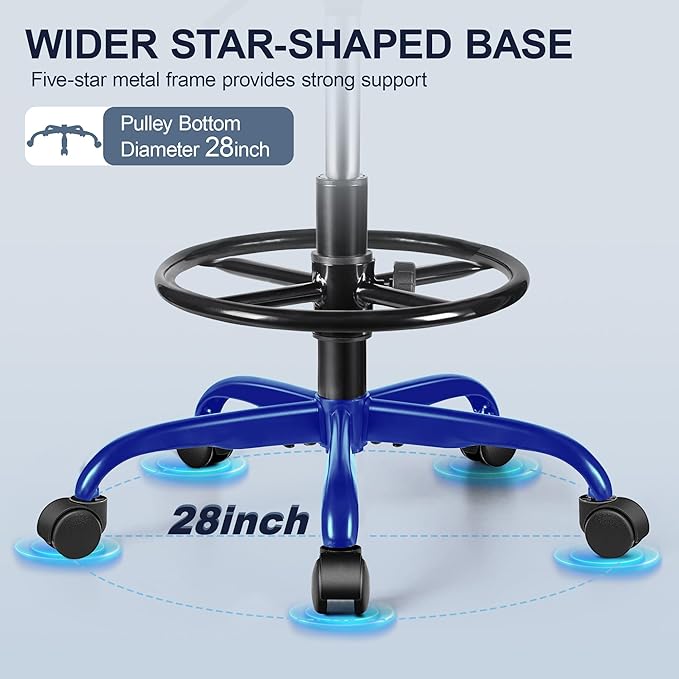 - Humanization Design: 15.8-inch cushion, more suitable for the comfortable size of most people; 28-inch five-star casters drafting chair, less prone to tipping over and more stable. The 2mm thick base supports up to 300 pounds