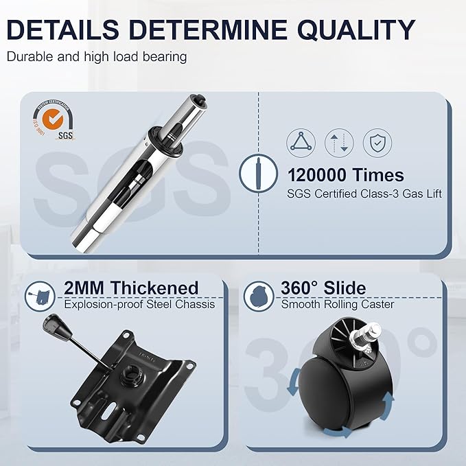 - Adjustable Height and Footrest Ring: The height of the rolling chair can be adjusted from 33.86 inches to 41.75 inches, making it suitable for users of varying heights. The footrest ring of the standing desk chair can be adjusted up and down by 7.87 inches, allowing you to find a comfortable angle for your legs