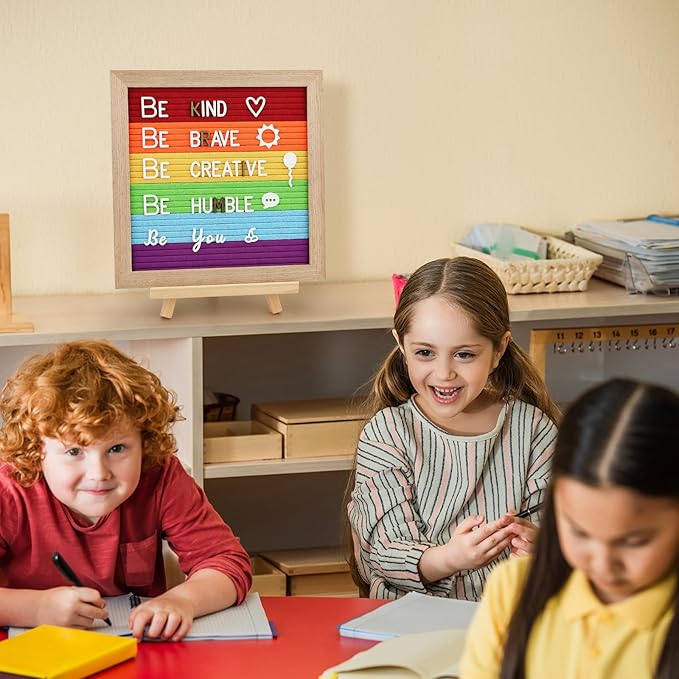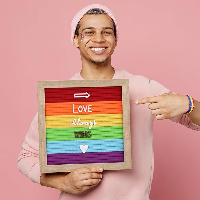 Changeable Felt Letter Board with Letters, Pre Cut & Sorted 725 Letters, Rainbow Decor, 10x10 Inch Message Board, Classroom Decor Farmhouse Wall Decor Sign Board, Pride Decorations for Office