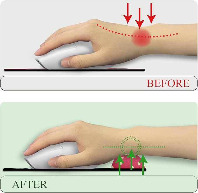 - Great Size and Thickness: With a size of 9.9" X 8.7", this gaming mouse pad fits all types of mice and computers. The 7mm thickness of the desk mouse pad provides optimal support for your wrist, reducing strain and discomfort. The 20mm wrist support adds extra cushioning for improved ergonomics