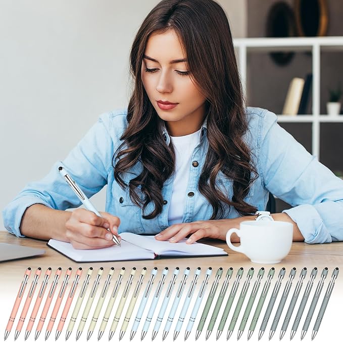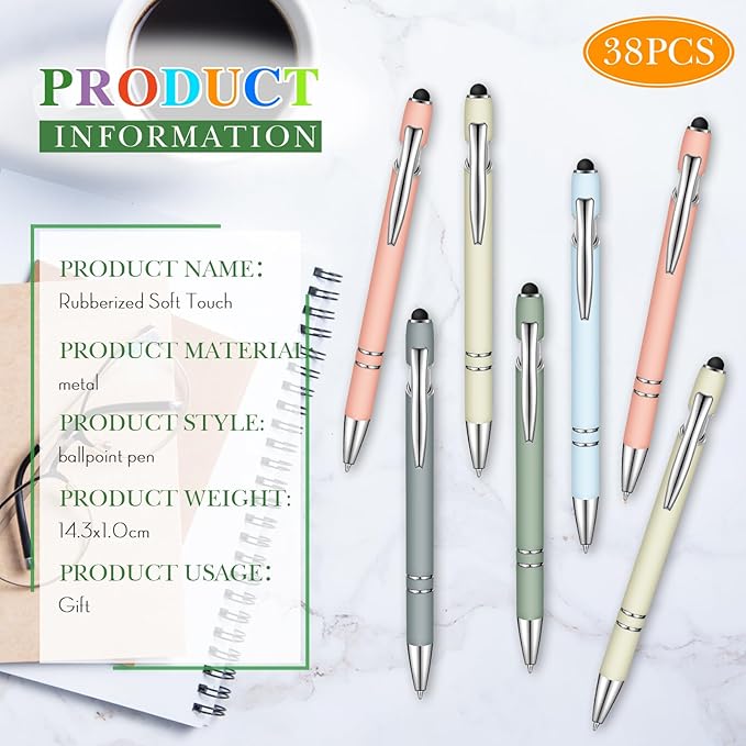 Zonon 38 Pieces Rubberized Ballpoint Pen with Stylus Tip Stylish Metal Pen Capactive Styli Pen with Soft Rubberized Grip, Black Ink Pen for Most Devices (Morandi Colors)