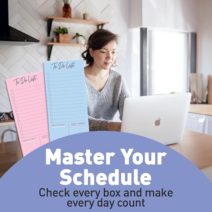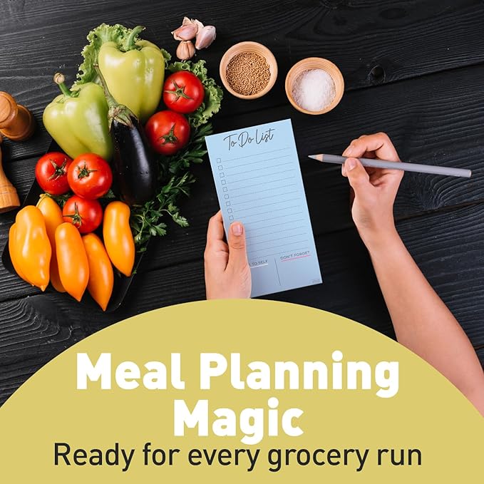 - Prominent Display & Easy Access –– With their strong magnetic backing, each notepad for fridge remains securely in place, keeping all tasks and reminders visible at a glance. With every visit to the fridge, you're greeted by the organized array of to-dos, grocery lists, and meal plans displayed on these 3.5x7” refrigerator notepads with magnet