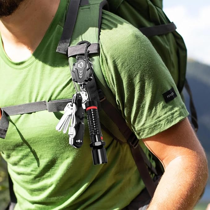 - [Multi-function tool] Cool tactical badge reel with key chain ring and ID badge clip not only can hang work ID name badge holder, keys, gadget buddy accessories, but also can help you open the beer cap smoothly. It can be fixed on belts, backpacks, handbags, outdoor tents. It aslo makes a great practical present for men, boyfriends, family, friends