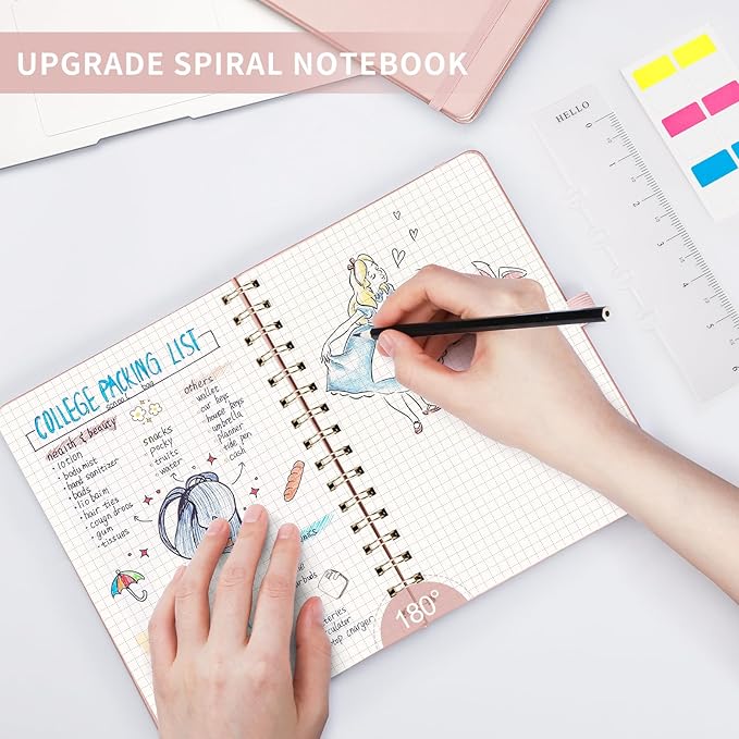 - PRACTICAL LAYOUT: Equipped an elastic band, a pen holder and removable bookmark ruler to keep your notebook organized. Comes with a DIY bookmark with a ribbon for self-attachment to the spiral, serving as a bookmark. Features a double-sided pocket for storing miscellany and 18pcs sticky notes for additional organization and reminders