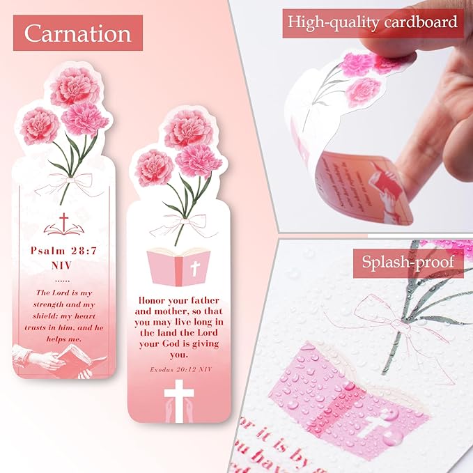 - The Motherly Love and Protection of the Carnation: Carnation womens bookmakes is nice floral gift for Mother's Day. Through a beautiful religious bookmark, convey your respect and gratitude to your mom, who is your best supporter