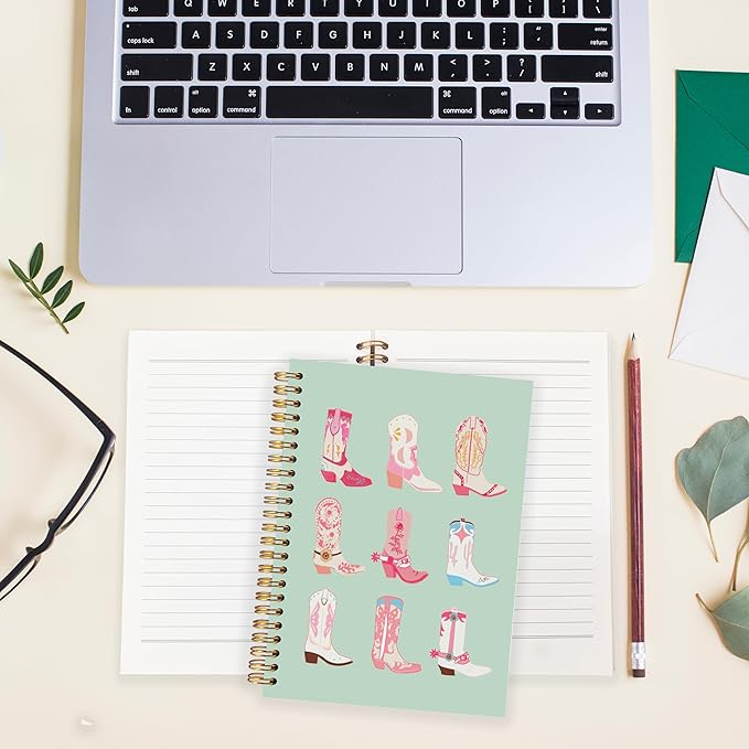 BearCake Cowgirl Boot Notebook, Cowgirl Stuff, Cowgirl Gifts, Western Office Supplies, Western Stuff for Women, Boho Western Notebook Journal 5.5x8.3 green