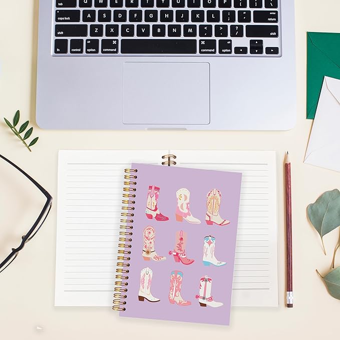 BearCake Cowgirl Boot Notebook, Cowgirl Stuff, Cowgirl Gifts, Western Office Supplies, Western Stuff for Women, Boho Western Notebook Journal 5.5x8.3 purple