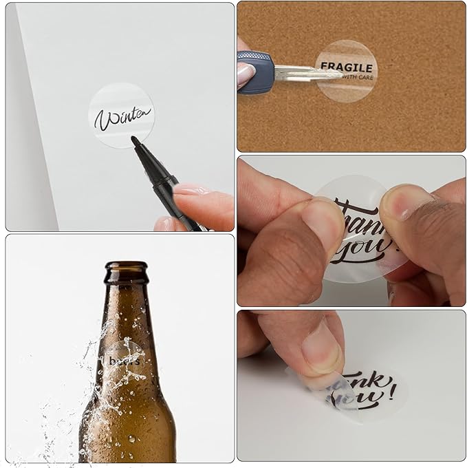 - Personalized: You can create custom business logo, thank you stickers, gift tag stickers or print QR codes, barcodes, name tags, address on products. Printable labels can also be easily written on the surface with a marker pen.