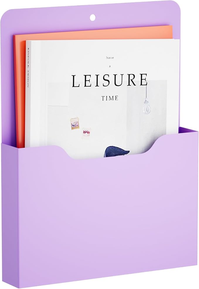 Magnetic File Holder - Magnetic Paper Holder, Pocket Organizer Office Supplies Storage Mail Organizer for Notebooks,Planners,Letter (Purple)