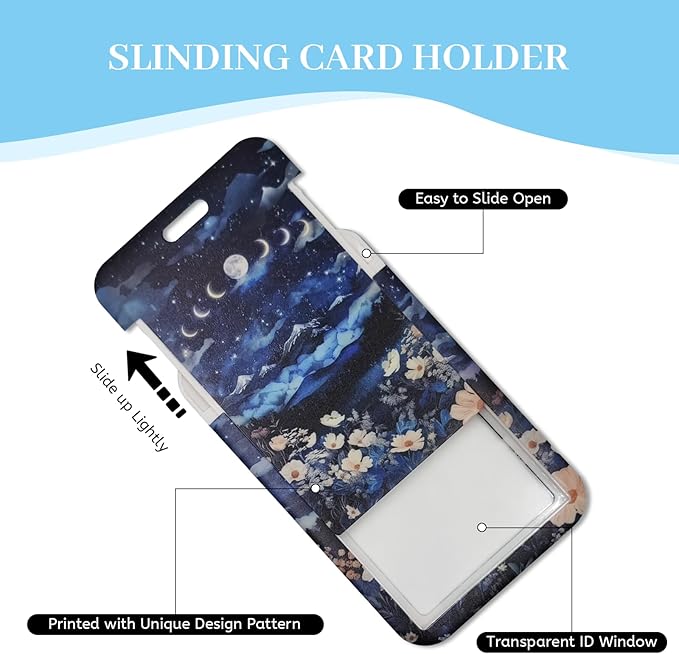 - 【Unique Design】This id badge holder with lanyard features unique arts: Moon lunar eclipse pattern, which adds happiness to your life and work. The lanyard with id holder is available in a range of vibrant colors and boasts a distinctive design, ensuring that it not only catches the eye but also adds a touch of style to your attire.