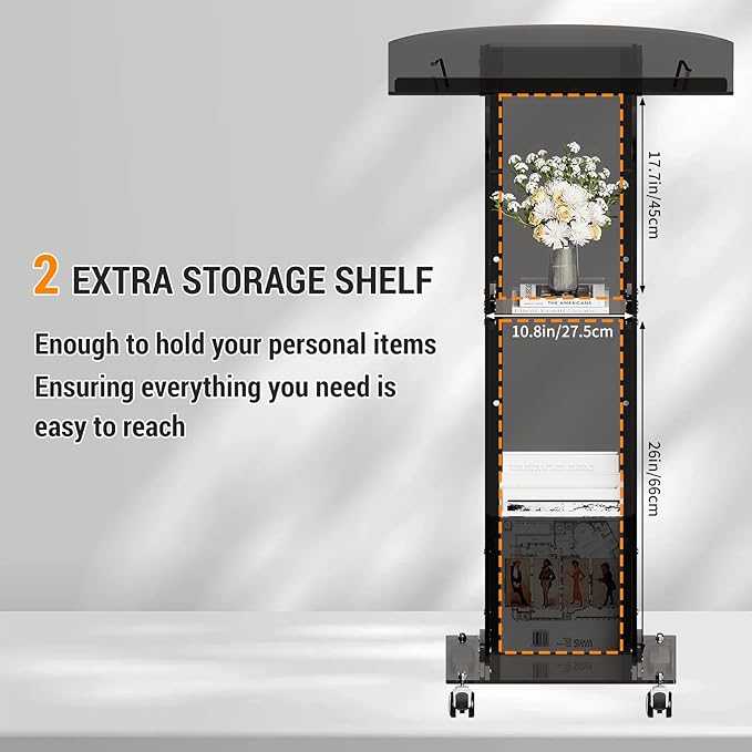 - 【Extra Shelf Storage】: Our acrylic podium pulpits for churches are durable, come with an additional shelf, providing a convenient place for cup, books, and teaching tools; Clear podium stand helps you keep materials organized and ready for presentation