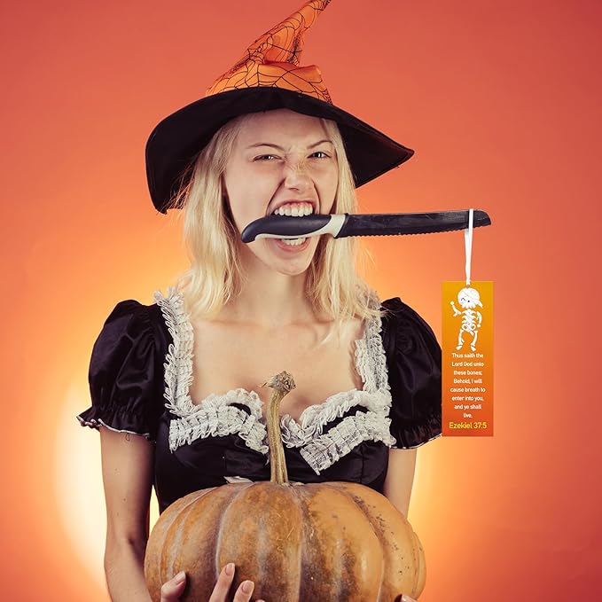 60 Pcs Halloween Skeleton Bookmark Ezekiel 37: 5 Ghost Christian Bookmarks God Wants to Give You Life VBS Exchange Gifts for Kids Adult Church School Classroom Prizes Party Favors