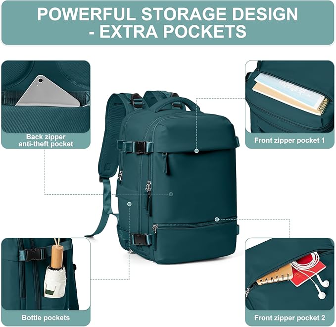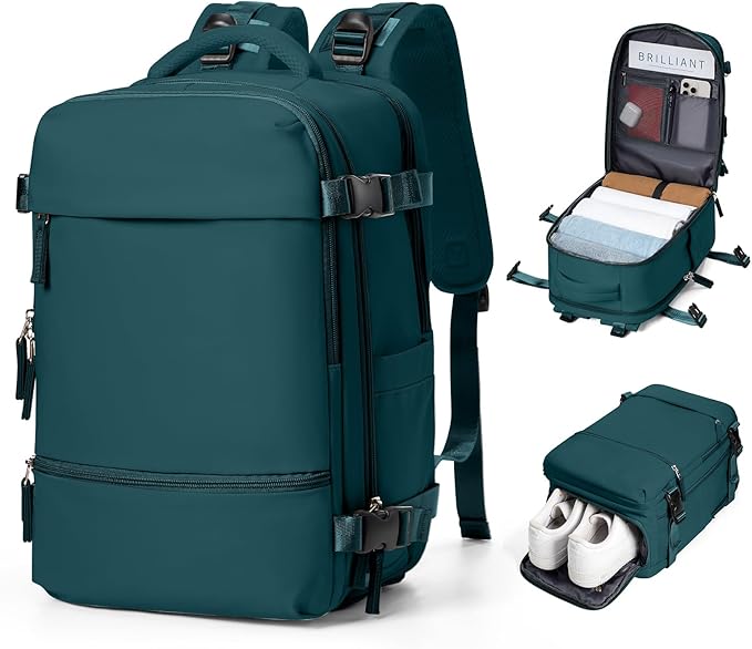 Travel Backpack Simple Durable Carry On Backpack with Shoe Compartment, Personal Item Travel Bag Flight Approved, Water Resistant Laptop Backpack for Women Men Weekender Business, Peacock Blue