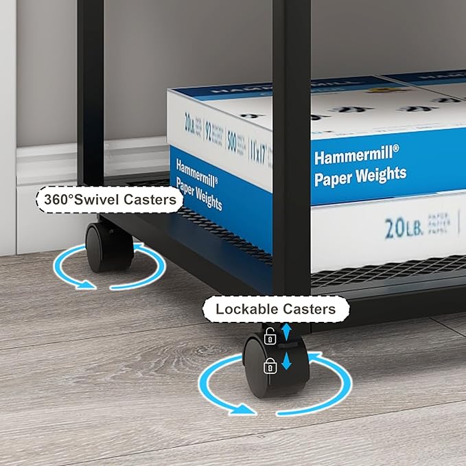 - 【Portable & Movable】The office printer stand adopts universal wheel design, which is light to push and pull, and can be easily moved to any place. Furthermore, each of the castors is lockable to provide high stability when need to keep the printer cart in position.