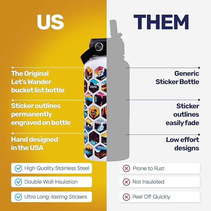 - WEATHERPROOF STICKERS: We know you'll love taking your bottle along with you on your adventure - that's why we've made sure our stickers are water-resistant and rip proof.