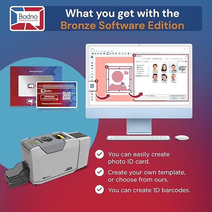 - BODNO BRONZE EDITION SOFTWARE WITH ACTIVATION CODE: Easy-to-use software with pre-made templates and drag-and-drop design features.