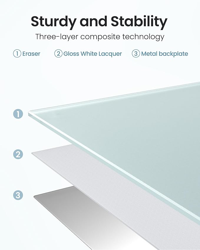 - Magnetic Glass Whiteboard:Glass is magnetic. You can display any document or photo you need on the whiteboard. Includes our included dry erase marker which also attaches to the board to prevent loss