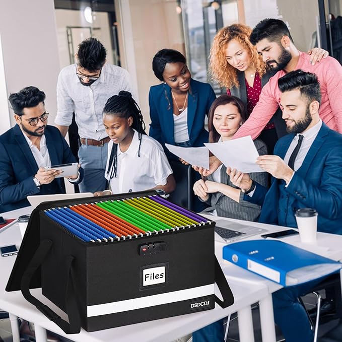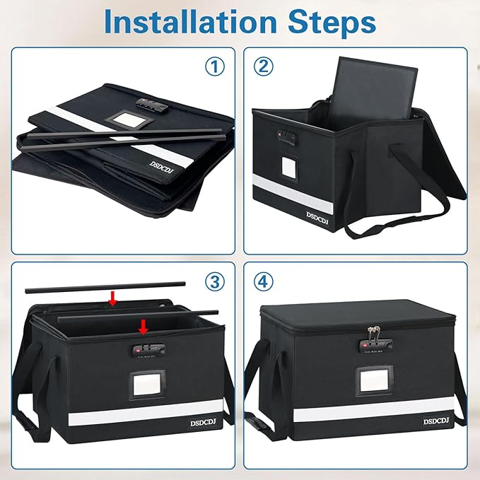 - Reflective Strip Design: The reflective strip design on the front of the portable file box with handle allows you to immediately find your portable file organizer even at night, protecting irreplaceable documents and valuables from fire. The transparent label slot allows for quick identification of the contents stored inside the box and easy sorting