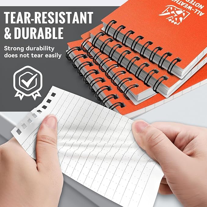 - Waterproof Notepad: No need to worry about your notes getting ruined by unexpected weather. Our waterproof notepad can be crafted to withstand water, sweat, grease, mud, and even laundry mishaps, your notes will remain safe and legible, allowing you to capture ideas, inspirations and memories without worry
