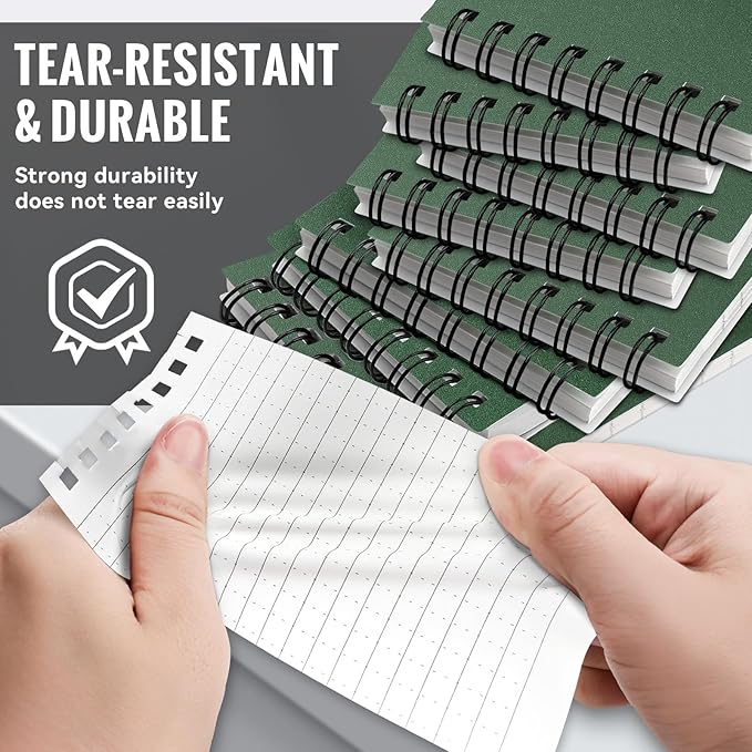 POPYOLA 8 Pack Waterproof Pocket Notebook, 3x5 Pocket Notepad, All Weather Mini Spiral Notepad, Write in the Rain Police Notepad with 100 Squared Pages for Outdoor Home Office School, Green