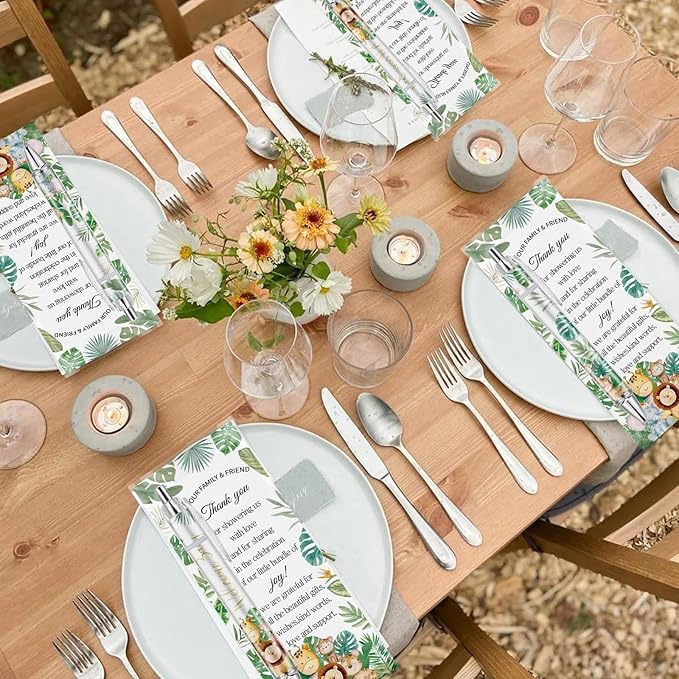 - What You Will Get: The safari baby shower set includes 50 pieces of baby shower pens, 50 baby shower cards, 50 OPP bags, and a bag of cable ties, which is enough for the baby shower theme party.
