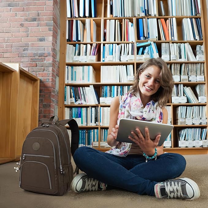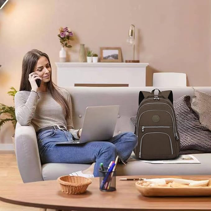 Casual Lightweight Travel Laptop Backpacks Water Resistant Large Nylon Backpack for Men Women Hiking Camping Cycling Packback Daypack, Fits 17.3 Inch Laptop and Notebook - Coffee