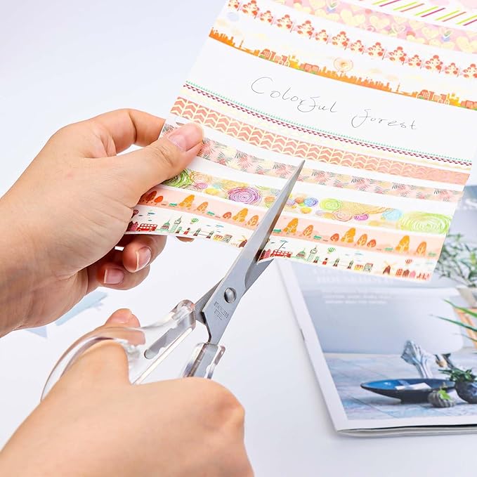 - ✔️FEATURE-- The clear scissors with sharp, durable blades ensure clean, precise cuts through various materials. And ergonomic finger hole handles provide a comfortable grip for extended use;