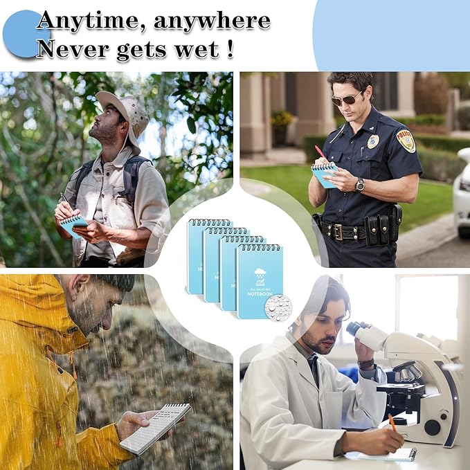 - 100% Waterproof Notebook: 4 Pack waterproof notepad, 100 pages / 50 sheets per waterproof notepad to meet your use. Our all weather notebook can withstand water, mud, and even laundry accidents won’t turn to mush