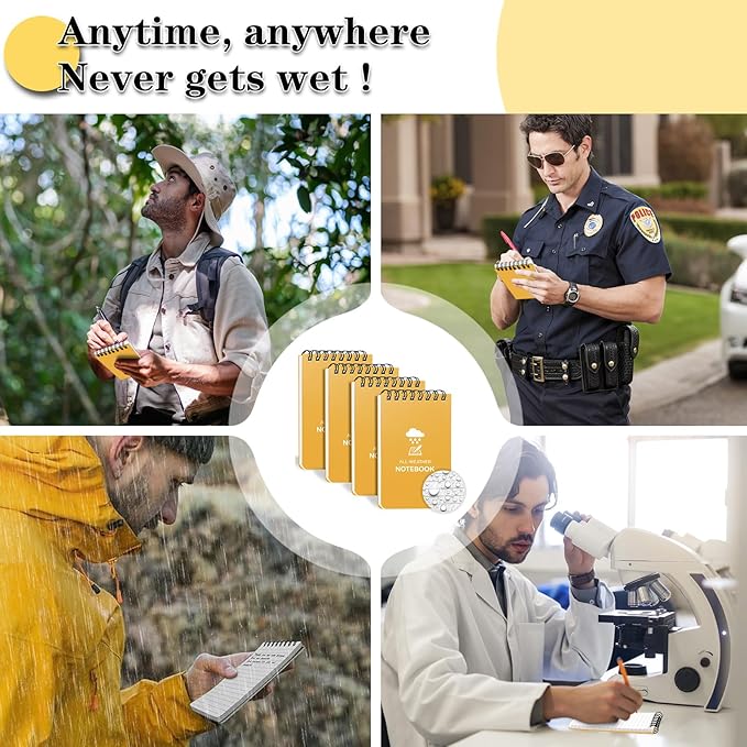 - 100% Waterproof Notebook: 4 Pack waterproof notepad, 100 pages / 50 sheets per waterproof notepad to meet your use. Our all weather notebook can withstand water, mud, and even laundry accidents won’t turn to mush