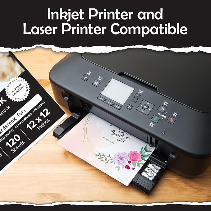 - 🖨️【Printer Compatible】Our white 12x12 cardstock is fully laser & inkjet printer compatible, providing crisp, smudge-free prints every time. Ideal 12 x 12 cardstock for creating custom invitations, business cards, and more with professional results.