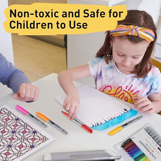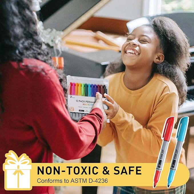 TOWON Permanent Markers 12 Assorted Colors - Waterproof Colored Fine Tip Pens Set, Home Office School Supplies for Kids, Adults Coloring