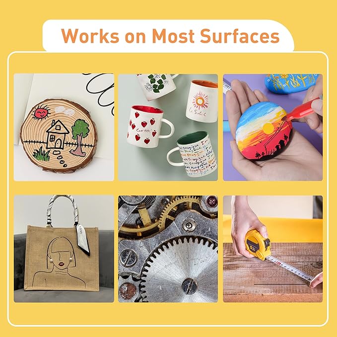 - 🖍️WORKS ON ANYTHING: Used on paper, poster, stone, wood, clothes, plastic, metal, ceramics, glass and other surfaces. Rich marker colors for writing, drawing, DIY, marking, coloring books and doodling and so on.