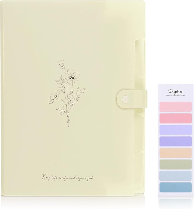 - Cute Solid Color Design. Expanding file folder has 5 expandable pockets. And tab positions for labels, organized