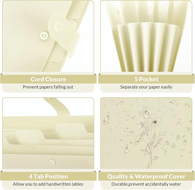 SKYDUE Expanding File Organizer with 5 Pockets, Accordion File Folders with Labels, Portable Document Paper Bill Receipt Organizer, Home College School Office Supplies, Letter Size,Apricot