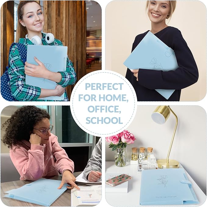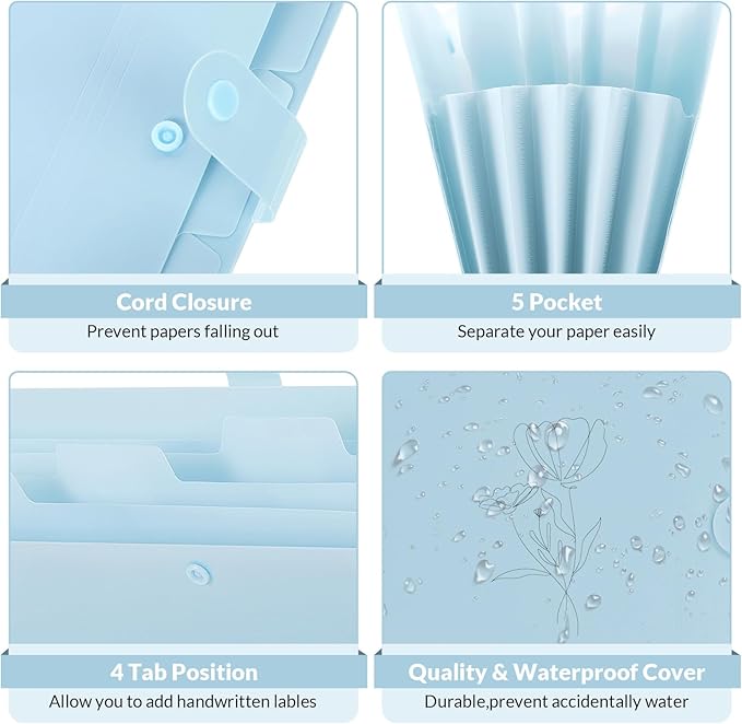 SKYDUE Expanding File Organizer with 5 Pockets, Accordion File Folders with Labels, Portable Document Paper Bill Receipt Organizer, Home College School Office Supplies, Letter Size,Babyblue