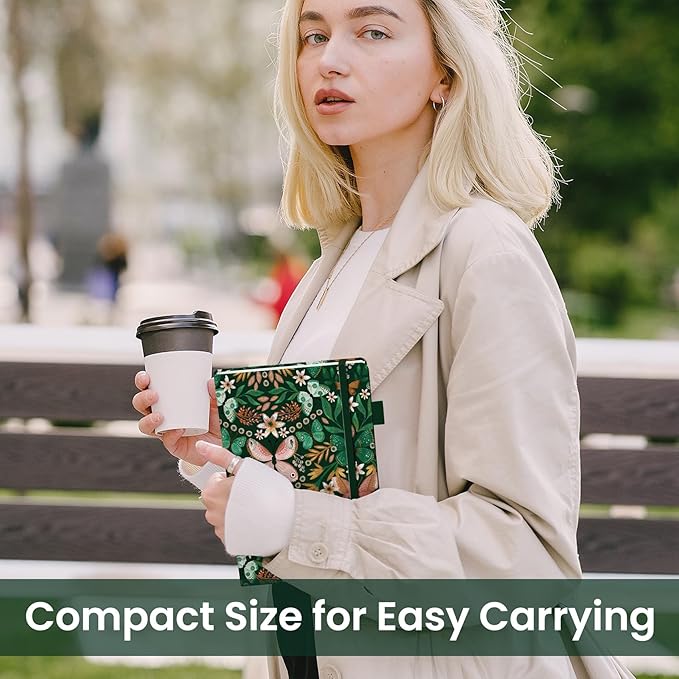 - Portable Size with Handy Extras: Sized at 5.7"x8.6", this medium A5 notebook is compact enough for easy carrying while still providing ample space for your creativity. The faux leather cover, expandable inner pocket, ribbon bookmark, and pen holder offer style and practicality for daily use.
