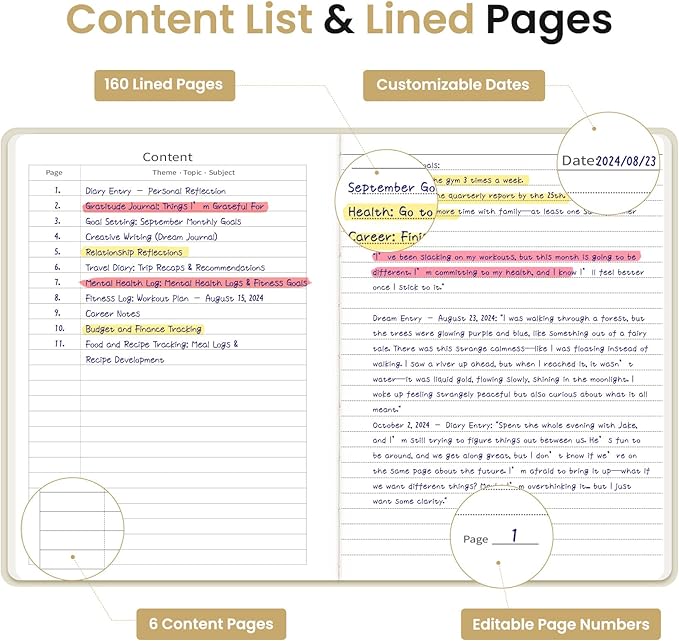 - Lay-Flat Design for Effortless Writing: The 180° lay-flat design makes writing a breeze for both left- and right-handed users. Whether you're jotting down quick notes or composing longer entries, this notebook provides total ease and comfort on any surface.