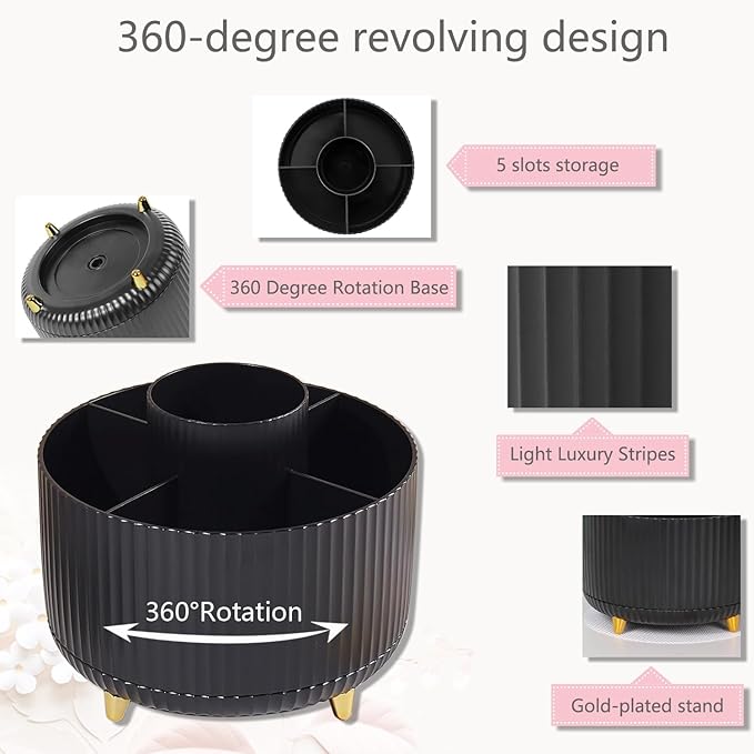 - 【360° Rotation Design】: This desktop pen holder can be rotated 360 degrees, Divided into 5 compartments,the rotation is smooth, and it will not get stuck.You can rotate it to any angle, easily store or take out the items you need, very convenient and fast. It can not only help You save time and increase productivity, but you can always keep your desktop clean and organized. Say goodbye to the days of hunting for misplaced stationery or fumbling with tangled work.