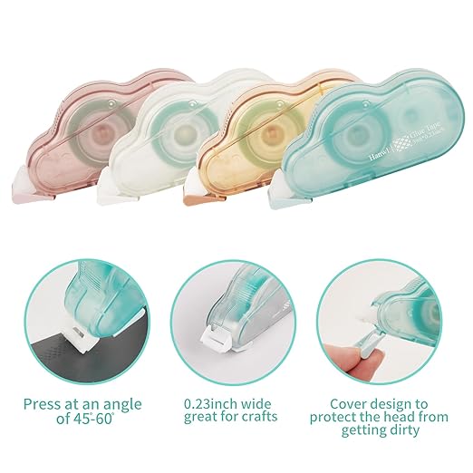 - The glue tape roller is made of high quality material, which makes the glue flow smoothly and evenly. Small size, easy to carry. It applies to schools, homes and offices. Easy for adults and children.