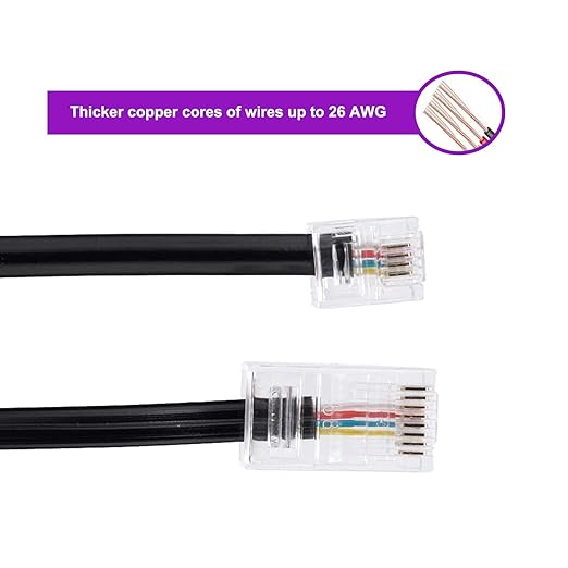 - 【COMMUNICATION】: Signal transmission designed. Be made of OFC (Oxygen Free Copper) Wire of 26AWG, which is much better than ordinary Copper-clad-Steel telephone cord, and the plugs coating plated with gold, that is to make sure the great connection and conservation.