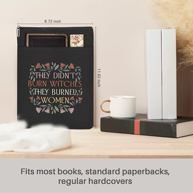 Book Themed Gifts Waterproof Book Sleeve Book Pouch Halloween Reading Gifts Witchy Gifts for Women Best Friend Book Covers for Paperbacks Book Accessories Book Protector with Zipper and Front Pocket