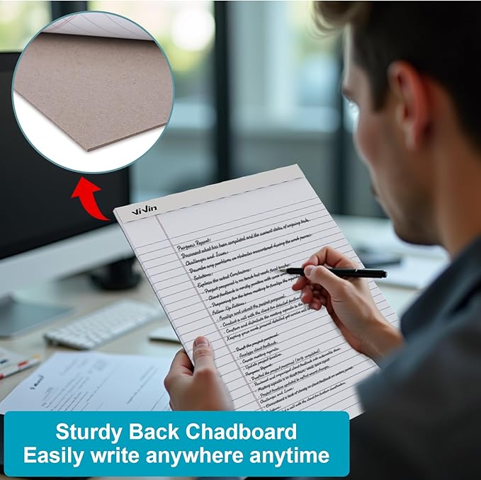 - 【Practical size】Each legal pad is 8.5 x 11 inches, the letter size that is easy to carry and store, and fits binders, folders, and subject notebooks in normal size. And the white paper features premium printing which is easy to write and helps to reduce eye fatigue.