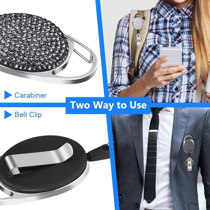 VIQWYIC Retractable ID Badge Holder with Clip, ID Name Badge Reels with Bling Rhinestones Retractable Card Holder for Office Worker Teacher Doctor Nurse (Light Black)