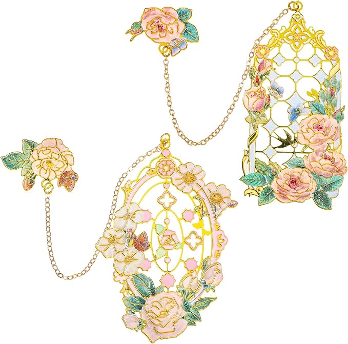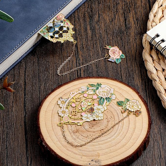 - 【2 Pcs Metal Rose Bookmarks】Each of these metal bookmarks features an intricate pink and white rose design, injecting a touch of sophistication and whimsy into your reading experience. The detailed artwork makes each bookmark a miniature work of art, The metal bookmark is carefully carved into the shape of a rose, showing exquisite beauty. The surface of the rose bookmark is plated with bright colors. It is a suitable gift for girls, mothers, and teachers.